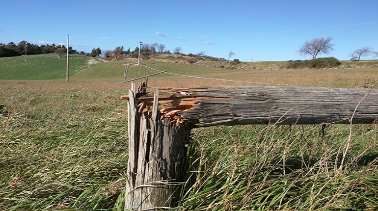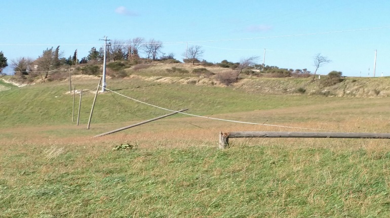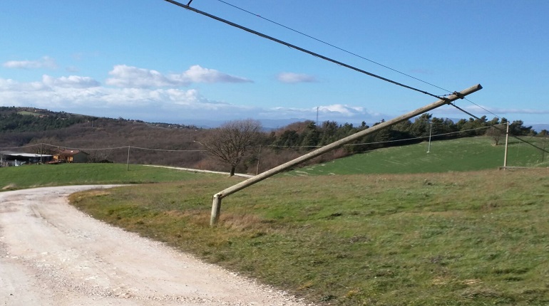URBINO – Un palo della Telecom è stato spezzato dal vento martedì mattina nella località delle Cesane, in via Monte Bagnato, a 5 km dal centro di Urbino.