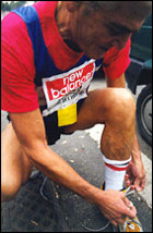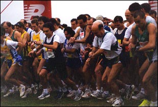 i punteggi ottenuti nelle quattro C'è tempo sufficiente per sondare alcuni punti del percorso. Tutta la gara misura 8 chilometri: tre giri da circa 2 mila e 600 metri. Con la tuta ancora addosso Edoardo passa sotto al ponte di gomma che indica la partenza, segue i nastri che segnano il corridoio dentro il quale i maratoneti devono correre, si allontana fino a perdersi tra due file di pini marittimi. Quando torna è sorridente e rilassato. "E' ora di iniziare il riscaldamento", dice togliendosi la tuta. Si allaccia le scarpe, appunta il pettorale sulla maglietta e inizia a correre su e giù su un sentiero di terra battuta. "Gli atleti delle categorie Master, Amatori, Promesse e Junior devono presentarsi sulla linea di partenza", dice alle nove in punto una voce dall'altoparlante che si trova vicino allal partenza. Una calca di uomini in pantaloncini si ammassa sotto il ponte di gomma. In prima fila c'è Edoardo. Alcuni corridori tengono la mano pronta sul cronometro per far partire il tempo. C'è chi si guarda intorno, chi invece guarda dritto davanti a sé, aspettando il segnale del via. Poi all'improvviso uno sparo e tutti scattano di corsa. |