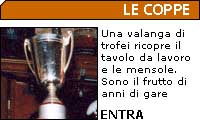 di coppe, targhe e trofei ammassati nelle mensole e negli scaffali. |