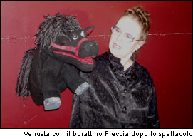 manto e criniera nera e briglie rosse il cavallo-burattino. “Freccia