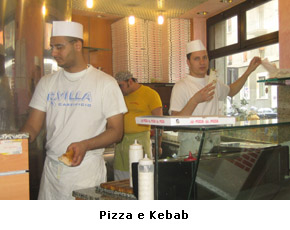 Integrazione, mozzarella e kebab La più richiesta è la pizza al kebab, una classica margherita ricoperta di carne di vitello appena affettata. “Pizza Fly”, la pizzeria di Ahmed e Mustafa el-Badry, sembra l’emblema dell’integrazione degli egiziani a Milano. E’ venerdì, giorno di mercato; per arrivare da 'Pizza Fly' bisogna attraversare una via trafficata, dove volti mediorientali si affannano tra le bancarelle disposte sopra un binario morto del tram. Potrebbe essere il mercato di Bab el-Louq al Cairo, invece siamo a Milano.