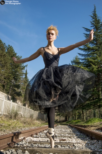 URBINO – Danzare per far tornare in vita un binario morto. Danzare per rievocare le emozioni di un treno che parte e che torna carico di nostalgia, speranza e vita. Questo il progetto della fotografa romana Georgia Nuzzo che in un weekend urbinate ha voluto resuscitare, anche solo per poche ore, l’ex stazione di Urbino. A farle compagnia l’attrice  Chiara Calabrese, anche lei romana che dall’alto delle punte di gesso e attraverso il turbinio del suo abito nero ha impresso sui binari in disuso l’arte e la gioia della danza.